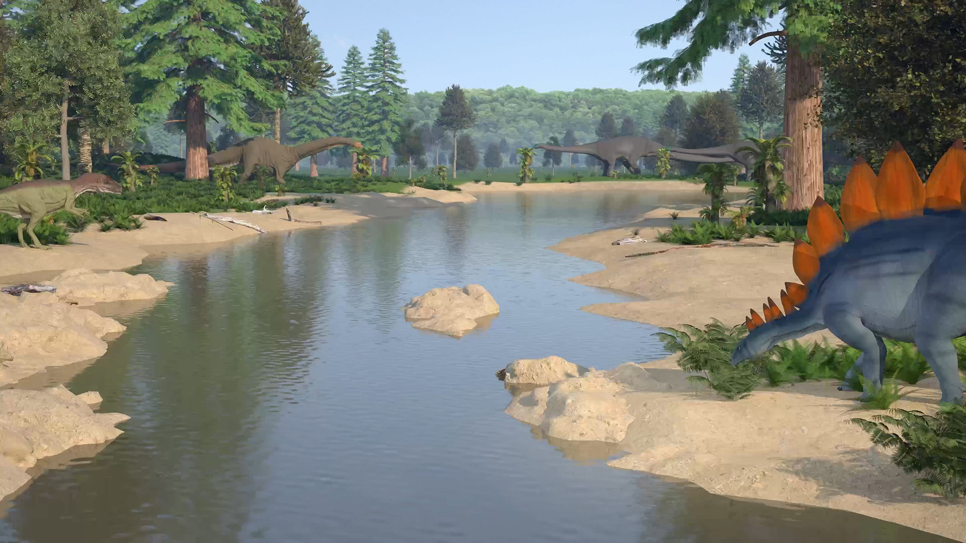 For the Dinosaur National Monument in Utah, I had the opportunity to develop two animated scenes, using a mix of 2D and 3D techniques, as part of a film produced by Northern Light Productions. This project involved seamless collaboration with scientific experts for accuracy and stylistic consistency with the museum's existing content.